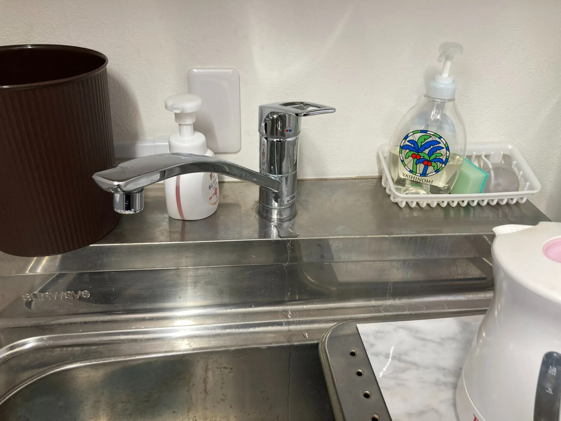 流しのシングルレバー混合水栓に関しては、器具の根本から水が漏れている状態でしたので、現状の物と同形状のものに交換することになりました。